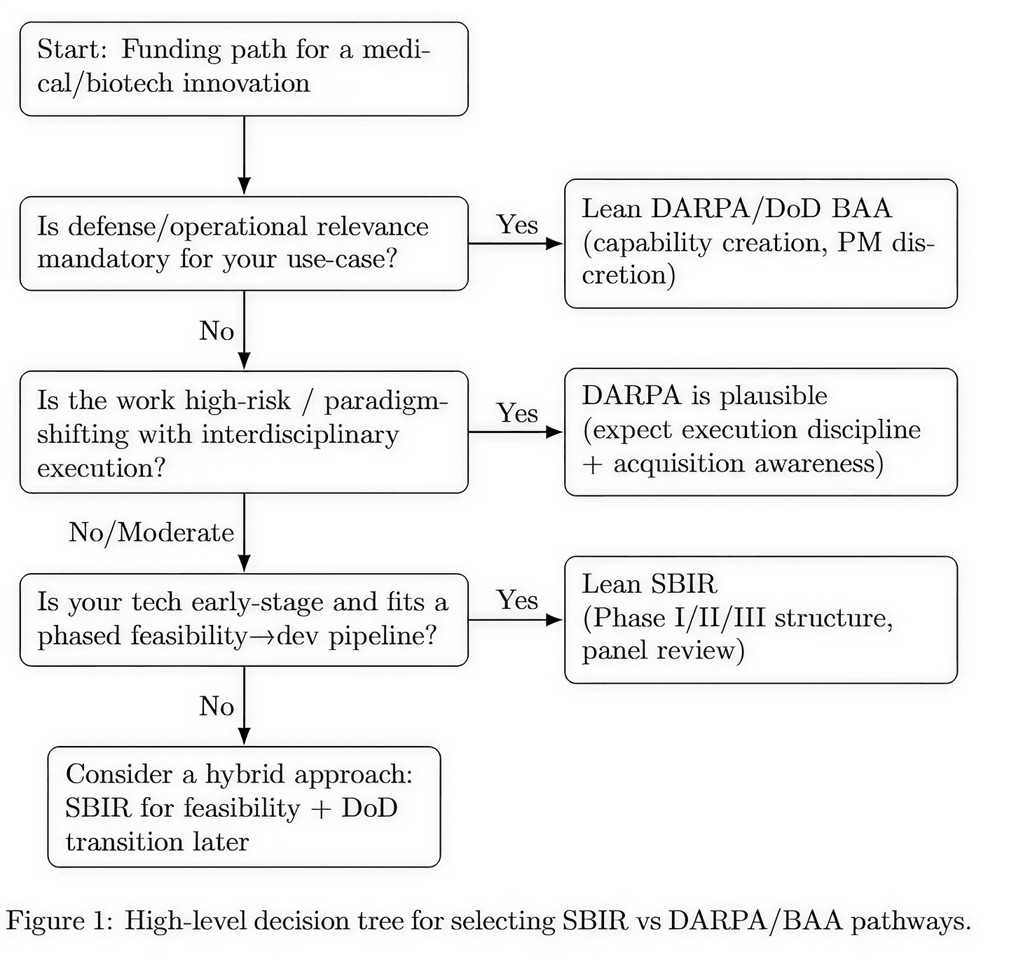 The decision between SBIR and DARPA should be driven by technology maturity, ambition, and operational relevance, not by familiarity or convenience.