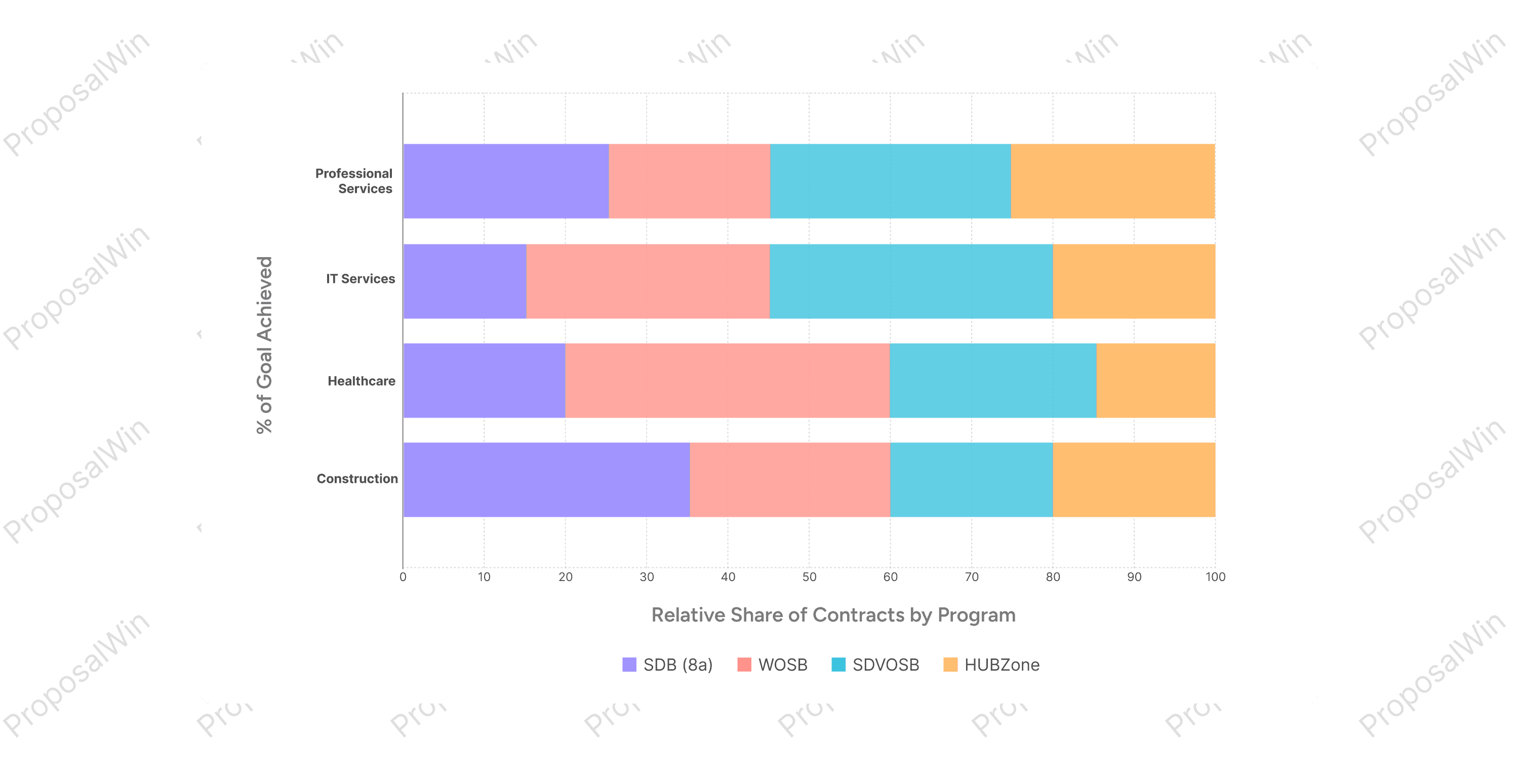 category. For instance, 8(a) and HUBZone awards are more common in construction, while WOSB and