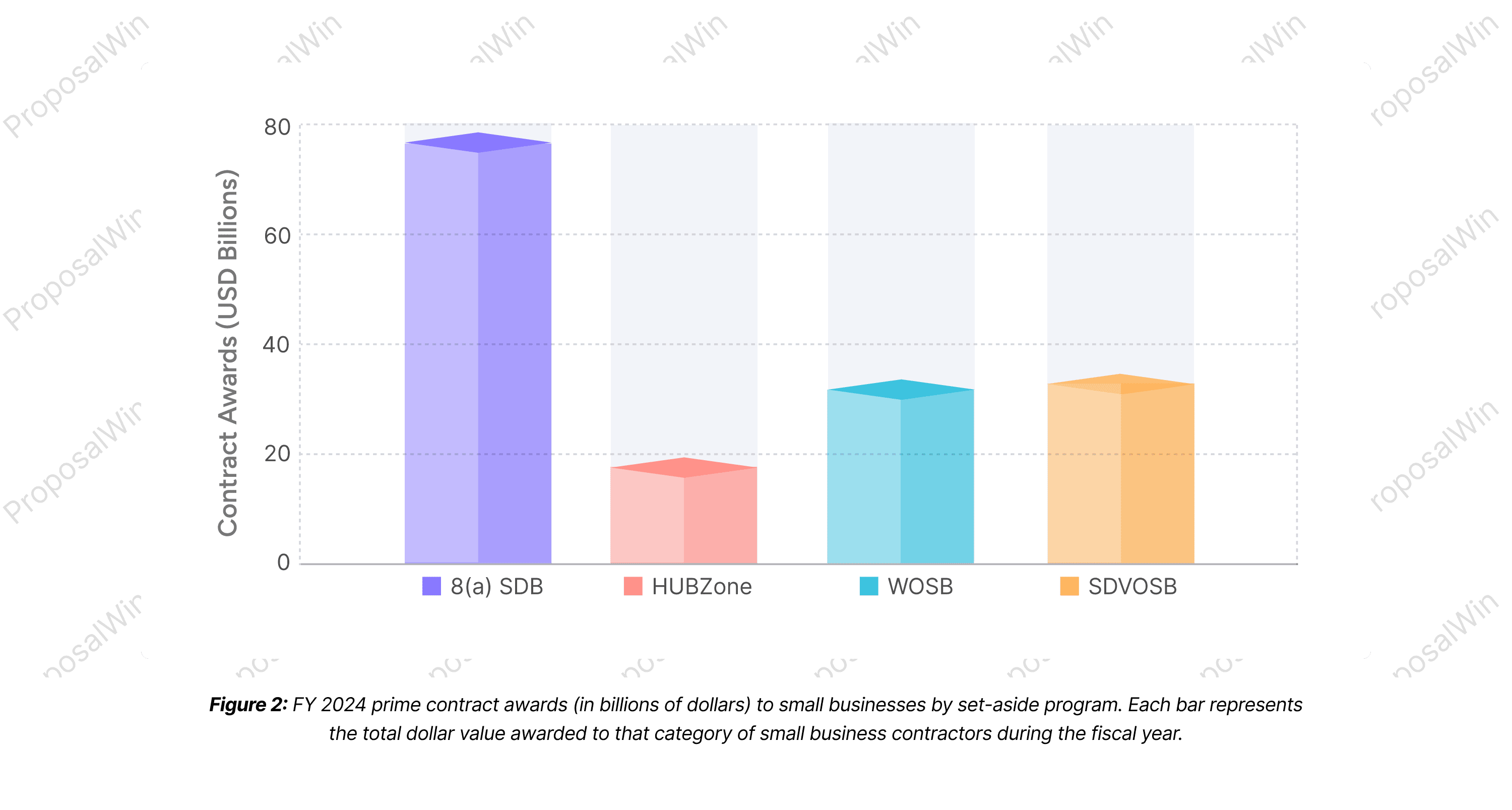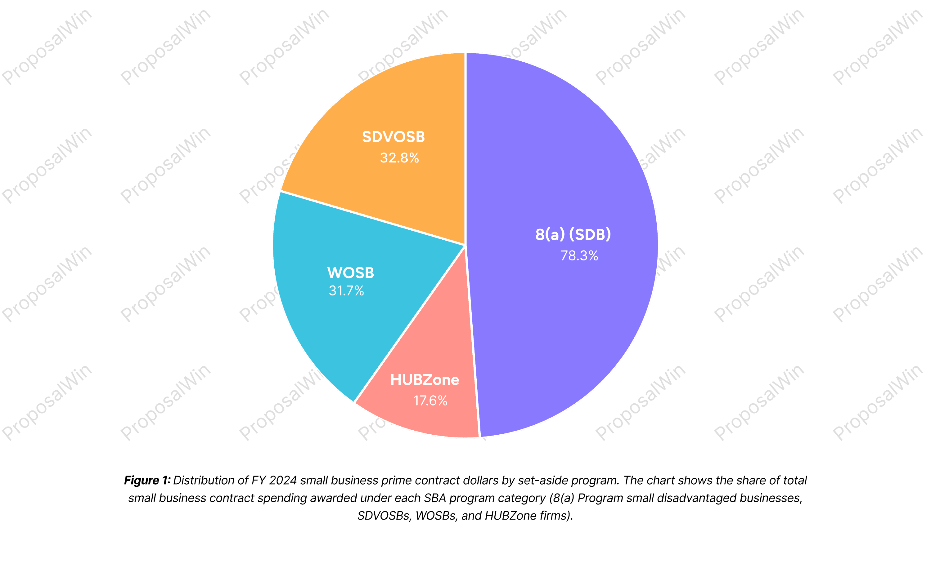 As shown above, small disadvantaged businesses in the 8(a) program captured the largest piece of the pie. HUBZone firms, while receiving a smaller share, still obtained nearly 10% of the small business dollars. This visual emphasizes how critical the 8(a)/SDB and other socio-economic programs are in driving opportunities for small businesses.